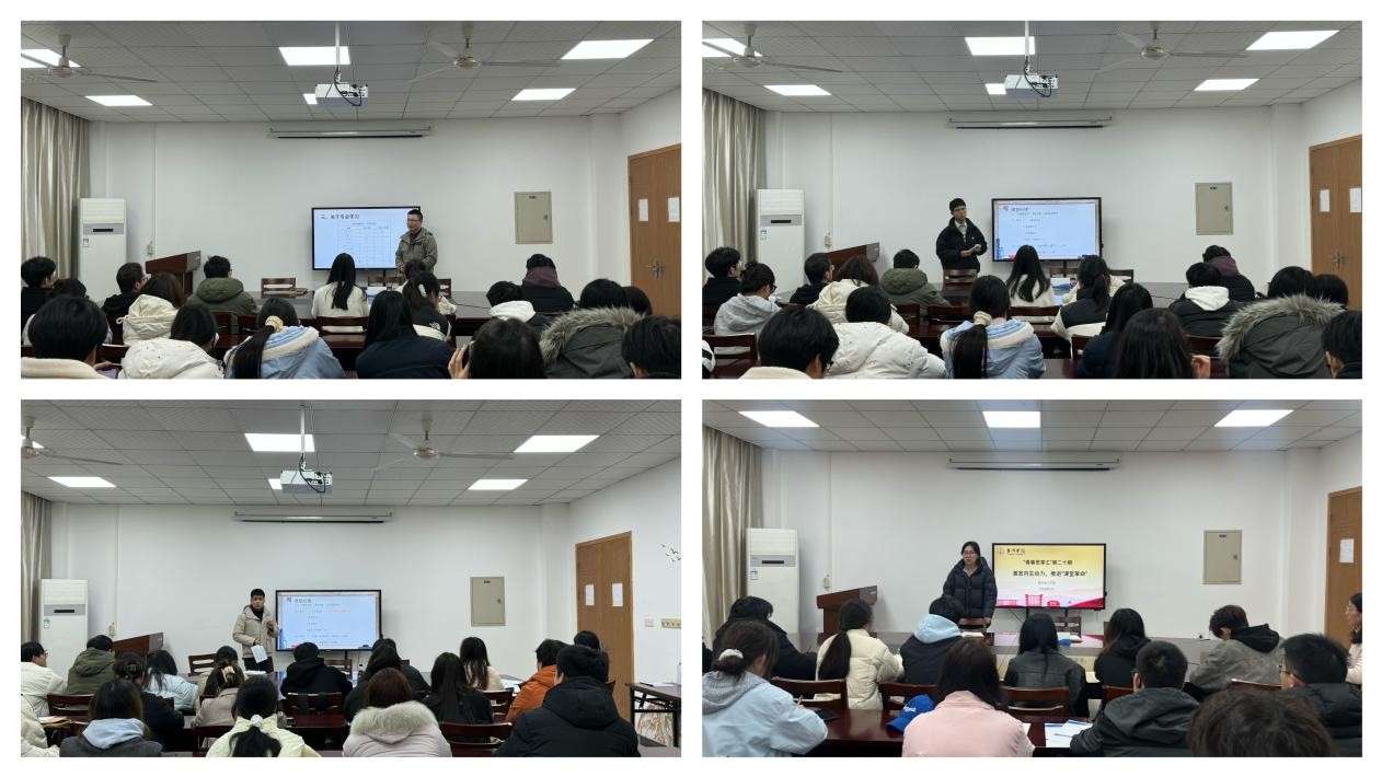 刘贵花对“何为课堂革命、为何要进行课堂革命、如何推进课堂革命”进行了阐述。她指出,课堂革命是一场师生联动、教学相长的“大合唱”,它不仅能提升课堂教学效果,更能提高人才培养质量。全体师生要凝聚共识,通过教育引导和系统管理,实现课堂纪律从“强制管控”到“自律自觉”的转变。一是“严”字立规,严格执行“上课啦”请假制度、席卡制度等,学院将通过“四率”评价指标和“五纳入”考核体系等强化员工的规矩意识和集体荣誉感。二是“联”字协同,学院将整合任课教师、辅导员、家长等多方资源,形成课堂纪律管理共同体。三是“导”字赋能,员工干部、员工党员要以身作则、示范效应,加强对所在寝室、班级、支部成员的督促提醒,以点带面形成纪律意识辐射作用。